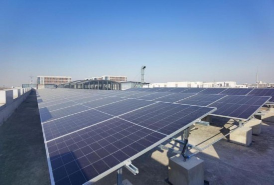 俯瞰天玛智控创新产业基地,屋顶上整齐排列的太阳能光伏板构成一道独特风景。天玛智控采用柔性薄膜与单晶硅光伏板,建设分布式光伏电站,年发电量达80万千瓦时,年减排温室气体数百吨。